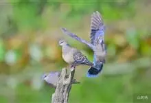 山斑鸠,是鸽形目鸽鸠科斑鸠属鸟类,又名金背斑鸠、棕背斑鸠、山鸠、金背鸠、麒麟斑、麒麟鸠、东方斑鸠、绿斑鸠、山鸽子。山斑鸠颈侧具明显黑白色条纹的块状斑,上体深褐色、具扇贝状斑纹,羽缘棕色,尾羽近黑色,…全部>>
