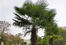 棕榈 H. Wendl.)是棕榈科棕榈属常绿乔木,树干圆柱形;叶片近圆形,叶柄具细圆齿;花小黄绿色,卵球形,组成分枝或不分枝的肉穗花序,花序大型多分枝;果实阔肾形,有脐和白粉,…全部>>