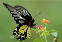金裳凤蝶是凤蝶科、裳凤蝶属的动物。金裳凤蝶身体呈黑色,头、颈和胸侧有红毛,腹部有黑黄两色相间条纹,雄蝶前翅黑色,具黑天鹅绒光泽,各脉两侧灰白色,后翅金黄色,各室外缘有等腰三角形黑斑1枚,斑内侧有晕,…全部>>