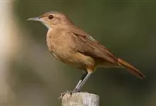 棕灶鸟:是鸟纲、灶鸟科的鸟类。体型较大,体长16-23厘米,体重31-65克。尾巴方形,喙很直。冠褐色,喉咙白色,上体羽毛呈红褐色,飞羽略灰暗,尾巴红褐色,下体是一种略带苍白的棕黄褐色,雌雄相似。…全部>>