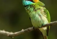 绿喉蜂虎是佛法僧目、蜂虎科的小型鸟类,共有9个亚种。身长22-25厘米,翼展29-30厘米,体重15-20克。喉绿色,额部、头顶至上背为锈红色,其余上体均为亮绿色。中央尾羽延长且端段狭细,…全部>>