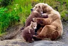 棕熊是熊科熊属哺乳动物。体形健硕,肩背隆起,身后长有一条短尾。毛色多为棕褐色或棕黄色;老年呈银灰色;幼年为棕黑色。野生条件下寿命为20—30年。棕熊分布广泛,主要分布在欧亚大陆和北美,…全部>>