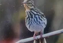 树鹨是小型鸣禽,外形和林鹨相似,体长15-16厘米。上体橄榄绿色具褐色纵纹,尤以头部较明显。眉纹乳白色或棕黄色,耳后有一白斑。下体灰白色,胸具黑褐色纵纹。野外停栖时,尾常上下摆动。…全部>>