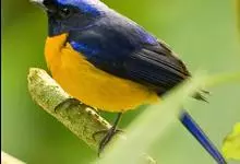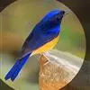棕腹大仙鹟:体重24-28克,体长15-17厘米,是一种小型的色彩亮丽的鹟。雄鸟上体深蓝,下体棕色,脸黑,额、颈侧小块斑、翼角及腰部亮丽闪辉蓝色。与棕腹仙鹟易混淆,区别在色彩较暗。雌鸟灰褐,…全部>>