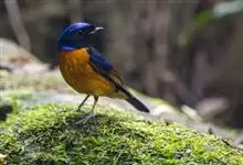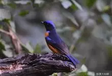 棕腹蓝仙鹟,Niltava vivida,鹟科仙鹟属的一种小型鸣禽,善在空中飞捕昆虫,中等体型18厘米,上体蓝,下体棕色,具黑色眼罩,胸橘黄渐变成臀部的皮黄色。国内分布于四川、云南、西藏和台湾等地。…全部>>