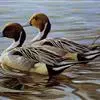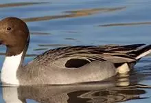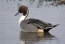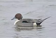 针尾鸭,是雁形目鸭科鸭属动物。体长约75厘米的大型戏水鸭,雄鸟头暗褐色,颈侧有白色纹路,向下与胸部白色相连,中央一对尾羽特别长;背灰色,有黑色细纹;翼镜绿色,胸腹白色,尾下覆羽黑色;雌鸟体羽大致为褐色,…全部>>