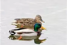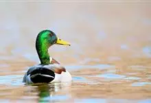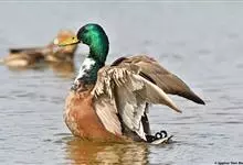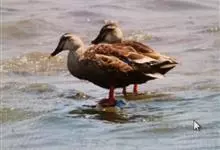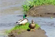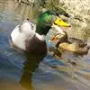 绿头鸭属游禽,大型鸭类。体长47-62厘米,体重大约1千克,外形大小和家鸭相似。雄鸟嘴黄绿色,脚橙黄色,头和颈辉绿色,颈部有一明显的白色领环。上体黑褐色,腰和尾上覆羽黑色,两对中央尾羽亦为黑色,且向…全部>>