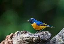 棕腹大仙鹟:体重24-28克,体长15-17厘米,是一种小型的色彩亮丽的鹟。雄鸟上体深蓝,下体棕色,脸黑,额、颈侧小块斑、翼角及腰部亮丽闪辉蓝色。与棕腹仙鹟易混淆,区别在色彩较暗。雌鸟灰褐,…全部>>