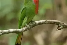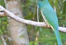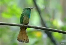 蓝须夜蜂虎是佛法僧目、蜂虎科的鸟类,体长约30厘米,是绿色林栖型蜂虎,蓝色的胸羽蓬松,嘴厚重而下弯。成鸟顶冠淡蓝,腹部棕黄带绿色纵纹。尾羽腹面黄褐。亚成鸟全身绿色。喉、胸部中央的羽甚长和亮色;该物种…全部>>