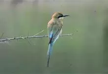 蓝颊蜂虎:是蜂虎科、蜂虎属的鸟类,共有2个亚种。体长27-33厘米,翼展46-49厘米,体重38-50克。嘴形细长而下弯,先端尖,…全部>>