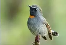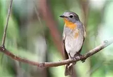 橙胸姬鹟:体长12-16厘米,是一种体型略小的林栖型鹟。尾黑而基部白,上体橄榄褐色,额具一白色横带,两端向上延伸至眼上形成眉斑。翼橄榄色,下体灰。成年雄鸟额上有狭窄白色并具小的深红色项纹,常不明显。…全部>>