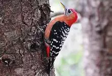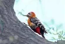 棕腹啄木鸟为啄木鸟科,啄木鸟属是中等体型的鸟类,体长约20厘米。头顶部具红色斑带。脚强健,有趾4个,其中2个向前,2个向后,各趾的趾端均具有锐利的爪,巧于攀登树木。尾羽的羽干刚硬如棘,…全部>>