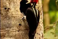 白腹黑啄木鸟,是啄木鸟科、黑啄木鸟属的中型鸟类,体长43-46厘米,头顶具长的红色羽冠,颚纹亦为红色,其余头、颈、胸和上体黑色,腰和腹白色,飞翔时白色腋羽和翅下覆羽亦明显可见。雌鸟头顶黑色,…全部>>