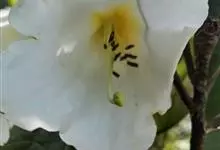 问客杜鹃:灌木,高1-3米。幼枝细长,密被腺体状鳞片。叶革质,椭圆形,卵状披针形或长圆形,上面被鳞片,幼叶中脉被毛或无毛,下面灰绿色。花序顶生,3-4花,伞形着生或短总状;花萼长环状或波状浅裂;花冠…全部>>