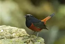 橙胸咬鹃:全长约28厘米。雄鸟头、颈橄榄绿色,上体及中央尾羽栗色;中央尾羽具黑色端,其外侧的2对尾羽黑色,最外3对尾羽基部黑色具白端;翼覆羽有密的黑、白相间横,飞羽黑褐;颏、喉橄榄色,胸橄榄黄,…全部>>