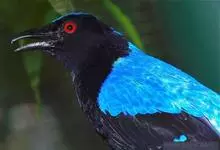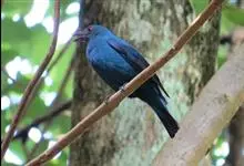 和平鸟中型鸟类,体长24~28厘米。眼红色,嘴、脚黑色。雄鸟从头顶到尾上覆羽等整个上体辉蓝色具紫色光泽,其余体羽黑色。雌鸟通体铜蓝色,仅飞羽黑褐色。常见的低地留鸟,…全部>>