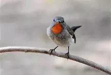 红喉姬鹟小型鸟类,体长11~13厘米。雄鸟上体灰黄褐色,眼先、眼周白色,尾上覆羽和中央尾羽黑褐色,外侧尾羽褐色,基部白色。颏、喉繁殖期间橙红色,胸淡灰色,其余下体白色,非繁殖期颏、喉变为白色。…全部>>