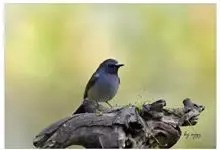 棕胸蓝姬鹟:属小型鸣禽,体长10-13厘米,体重6-10克,是一种体型很小的灰蓝及棕色鹟,雌雄羽色不同,雄鸟羽色艳丽,雌鸟羽色暗淡。雄鸟上体深蓝色,胸橙黄色,下腹灰白色。亚成鸟具褐色斑驳。…全部>>