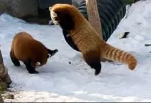 小熊猫:是小熊猫科、小熊猫属的一种动物。雌雄相似,不存在二态性。外形像猫,但较猫肥大,全身红褐色。圆脸,吻部较短,脸颊有白色斑纹。耳大,直立向前。四肢粗短,为黑褐色。尾长、较粗而蓬松,…全部>>