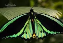 荧光裳凤蝶是凤蝶科裳凤蝶属的一种大型蝴蝶,该物种共有3个亚种。该蝶飞翔的时候姿态优美,前翅黑色,后翅金黄色和黑色交融的斑纹在阳光照射下金光灿灿,显得华贵美丽。幼虫寄主为多种马兜铃属的植物,取食马兜铃…全部>>