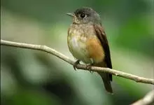 棕尾褐鹟:体重9-16克;体长109-122毫米,是一种体型略小的红褐色鹟。眼圈皮黄,喉块白,头石板灰色,背褐,腰棕色,下体白,胸具褐色横斑,两胁及尾下覆羽棕色。通常具白色的半颈环。…全部>>