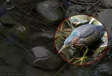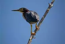 绿鹭:是鹳形目鹭科绿鹭属鸟类。体型小,头顶黑,枕冠亦黑色,上体蝉灰绿色,下体两侧银灰色;前额至后枕及冠羽墨绿色,眼后有一白斑,颊纹黑色;颚纹白色,后颈、颈侧和体侧烟灰色;背部披灰绿色矛状长羽,…全部>>