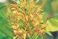 黄姜花:姜科,姜花属多年生草本草本芳香花卉,秋冬季开花,穗状花序,长圆形;苞片长椭圆形,覆瓦状排列,每一苞片内有花3-5朵;花深黄色,形似蝴蝶,气味芬芳纯正,沁人心脾;唇瓣倒心形,黄色,…全部>>