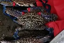 花蟹因外壳有花纹而得名。花蟹有时专指兰花蟹,属于梭子蟹科,但因地域之差异,也有称红花蟹为花蟹。