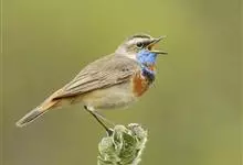 蓝点颏亦称“蓝喉歌鸲”,通称蓝靛颏儿。身体大小和麻雀相似,体长12-13厘米,体重17-18克。头部、上体主要为土褐色。眉纹白色。尾羽黑褐色,基部栗红色。颏部、喉部辉蓝色,下面有黑色横纹。下体白色。…全部>>