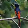 灰喉山椒鸟:共有8个亚种。体长18-22厘米。雄鸟头部和背亮黑色,腰、尾上覆羽和下体朱红色,翅黑色具一大一小的两道朱红色翼斑。中央尾羽黑色,外侧尾羽基部黑色,端部红色。…全部>>