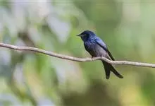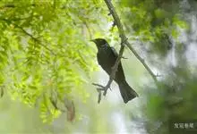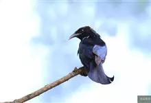 发冠卷尾是中型鸟类,体长28-35厘米。通体绒黑色缀蓝绿色金属光泽,额部具发丝状羽冠,外侧尾羽末端向上卷曲。栖息于海拔1500米以下的低山丘陵和山脚沟谷地带,多在常绿阔叶林、次生林或人工松林中活动。…全部>>