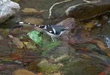 白额燕尾是雀形目鸫科燕尾属鸟类,又叫水鸦雀、白冠燕尾、黑背燕尾。前额至头顶具白斑,头余部、颈、背、喉及胸黑色,腰、腹部及尾下覆羽白色,两翼黑色且具白色翼斑;尾上覆羽黑色并具白色端斑,中央尾羽最短,…全部>>