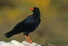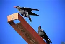 红嘴山鸦,是脊索动物门鸟纲雀形目鸦科鸟类。红嘴山鸦的成鸟通体羽毛纯黑色具有蓝色金属光泽,翼和尾泛有蓝绿色金属光泽;虹膜暗褐色,喙较为尖细,并且呈镰状下弯,喙和脚朱红色。…全部>>