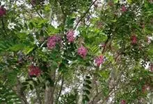 红花刺槐是豆科刺槐属的植物。其干皮深纵裂;枝具托叶刺,羽状复叶互生,叶片卵形或长圆形,具芒尖;基部圆形。花两性;总花序下垂;花冠粉红色,芳香;果条状长圆形,腹缝有窄翅。花期4~5月,果期9~10月。…全部>>