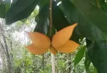 假苹婆是锦葵科苹婆属乔木植物。幼枝被毛;叶椭圆形或披针形,先端骤尖,基部钝或近圆无毛;圆锥花序腋生,花淡红色;蓇葖果鲜红色,长卵圆形或长椭圆形;种子卵圆形黑褐色;花期4-6月。…全部>>