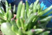 筒叶花月,是景天科青锁龙属的多年生草本植物。植株多分株,灌木状,茎较粗壮,圆柱形,表皮灰褐色;叶片肉质,互生,呈圆筒状,簇生于茎或分枝顶端,叶端呈斜截形,截面为椭圆形;花呈星状,淡白色;花期秋季。…全部>>
