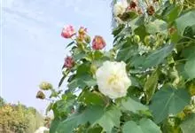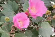 木芙蓉,锦葵科木槿属落叶灌木或小乔木。小枝上有细绒毛;叶片为卵状心形,托叶为披针形,常早落;花单生,花萼为钟形,花冠初为白色或淡红色,后逐渐变为深红色;果实为扁球形,有淡黄色的毛附着。花期8到10月。…全部>>