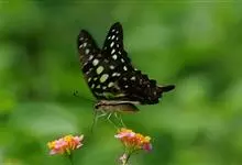 青带凤蝶Graphium sarpedon ,又名青凤蝶,是最普遍的中型凤蝶,飞行速度很快。青带凤蝶的翅膀中央有许多浅蓝色的斑点,很整齐地排列成一条直线。这些斑点由上而下逐渐变大,就像一条青色的带子。全部>>