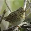 矛斑蝗莺:体长11-14厘米,体重9-13克。上体橄榄褐色密布粗著的黑褐色纵纹,眉纹淡黄色细而不明显,下体乳白色具黑色纵纹,尾羽腹面无白端。虹膜暗褐色;嘴黑褐色,下嘴基黄褐色;脚肉色。…全部>>