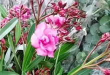 夹竹桃,又名红花夹竹桃、欧洲夹竹桃,是夹竹桃科夹竹桃属的一种常绿直立大灌木,枝条灰绿色,含水液。叶披针形,3叶轮生。聚伞花序顶生,花冠粉红至深红色,花冠漏斗状,有特殊香味。蓇葖果,圆柱形。种子长圆形,…全部>>