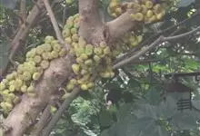 大果榕是桑科榕属的小乔木,株高可达10米;幼枝被柔毛;叶互生,宽卵状心形或近圆形;雄花无梗、匙形、花丝长,雌花生于雌株榕果内,子房白色;榕果簇生于树干基部或老茎短枝上、扁球形或陀螺形,…全部>>