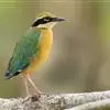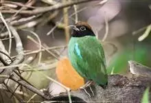 绿胸八色鸫:是雀形目八色鸫科的鸟类,共有12个亚种。体长为16-18厘米,体重65-69克。体型圆胖,尾短,腿长。头黑,上体绿色,两翼深色而具白色斑纹,头顶至后枕深褐,胸及腹部苹果绿,臀亮红。…全部>>