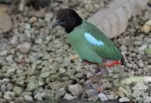绿胸八色鸫:是雀形目八色鸫科的鸟类,共有12个亚种。体长为16-18厘米,体重65-69克。体型圆胖,尾短,腿长。头黑,上体绿色,两翼深色而具白色斑纹,头顶至后枕深褐,胸及腹部苹果绿,臀亮红。…全部>>