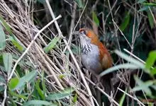 斑胸钩嘴鹛是雀形目、画眉科、钩嘴鹛属的鸟类。体型略大的钩嘴鹛。无浅色眉纹,脸颊棕色。甚似锈脸钩嘴鹛但胸部具浓密的黑色点斑或纵纹。栖息于低山地区及平原的林地灌丛间,在林间作短距离飞翔。…全部>>