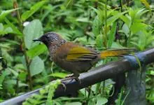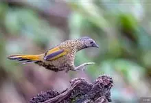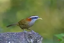 蓝翅噪鹛:噪鹛科、彩翼噪鹛属动物。中型鸟类,体长22-25厘米。上体棕橄榄褐色密被黑色鳞状斑,眼蓝白色,眼上有一长而宽阔的黑色眉纹,从眼先直到颈侧。下体棕褐色被黑色鳞状斑;尾上和尾上覆羽栗色,…全部>>