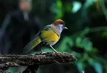 红头噪鹛中型鸟类,体长22~28厘米。头顶棕红色,眼先、脸、颏、喉黑色,上体橄榄色或棕橄榄褐色,外侧飞羽金黄色,尾羽基部亦为金黄色,下体多为暗橄榄褐色。该种和赤尾噪鹛较为相似,…全部>>