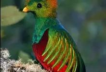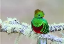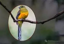 橙胸咬鹃:全长约28厘米。雄鸟头、颈橄榄绿色,上体及中央尾羽栗色;中央尾羽具黑色端,其外侧的2对尾羽黑色,最外3对尾羽基部黑色具白端;翼覆羽有密的黑、白相间横,飞羽黑褐;颏、喉橄榄色,胸橄榄黄,…全部>>