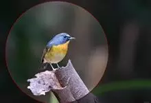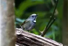 棕胸蓝姬鹟:属小型鸣禽,体长10-13厘米,体重6-10克,是一种体型很小的灰蓝及棕色鹟,雌雄羽色不同,雄鸟羽色艳丽,雌鸟羽色暗淡。雄鸟上体深蓝色,胸橙黄色,下腹灰白色。亚成鸟具褐色斑驳。…全部>>