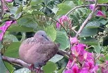 珠颈斑鸠,别名花斑鸠、珍珠鸠、花脖斑鸠、鸪鹪,是鸠鸽科副斑鸠属鸟类。体型中等,体长27~34cm,体重120~205g,雌鸟和雄鸟羽色相似,但雌鸟不如雄鸟羽色亮泽。珠颈斑鸠前额至头顶羽色稍淡,…全部>>