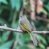 凤头雀嘴鹎:属小型鸟类,体长18-22厘米。嘴粗短、呈象牙色或乳黄色,前额和脸灰色,头顶黑色,有一朝前竖立的黑色羽冠。上体橄榄绿色,下体黄绿色,尾羽黄绿色具宽阔的黑褐色端斑。…全部>>
